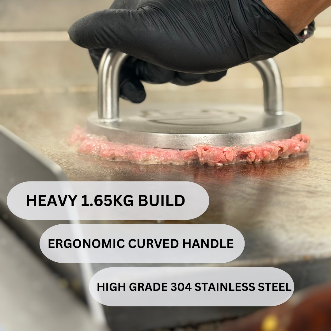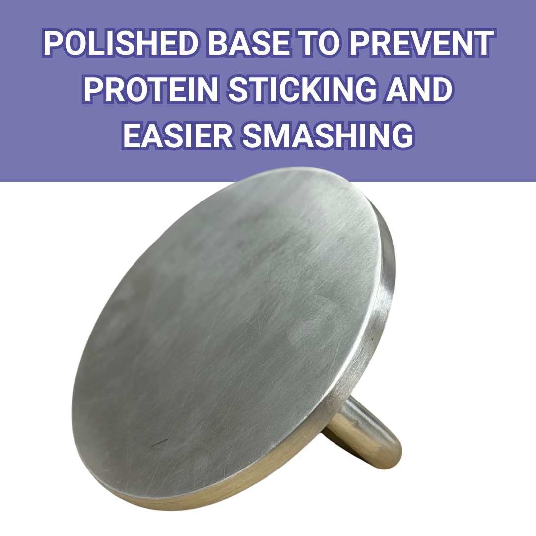 Elevate your burger craft with Chebbo's PREMIUM Burger Smasher. Engineered to apply even pressure, it creates perfectly smashed patties featuring crispy edges and a juicy centre, locking in rich flavours.